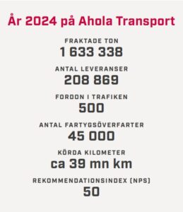 För Ahola Transport var 2024 ett år av tillväxt och utveckling. Vi utökade vår verksamhet i CEE-länderna, var först i Norden med att inleda gränsöverskridande transporter med en helt eldriven fordonskombination samt utvecklade digitala lösningar som optimerar vår verksamhet och förbättrar arbetssäkerheten.